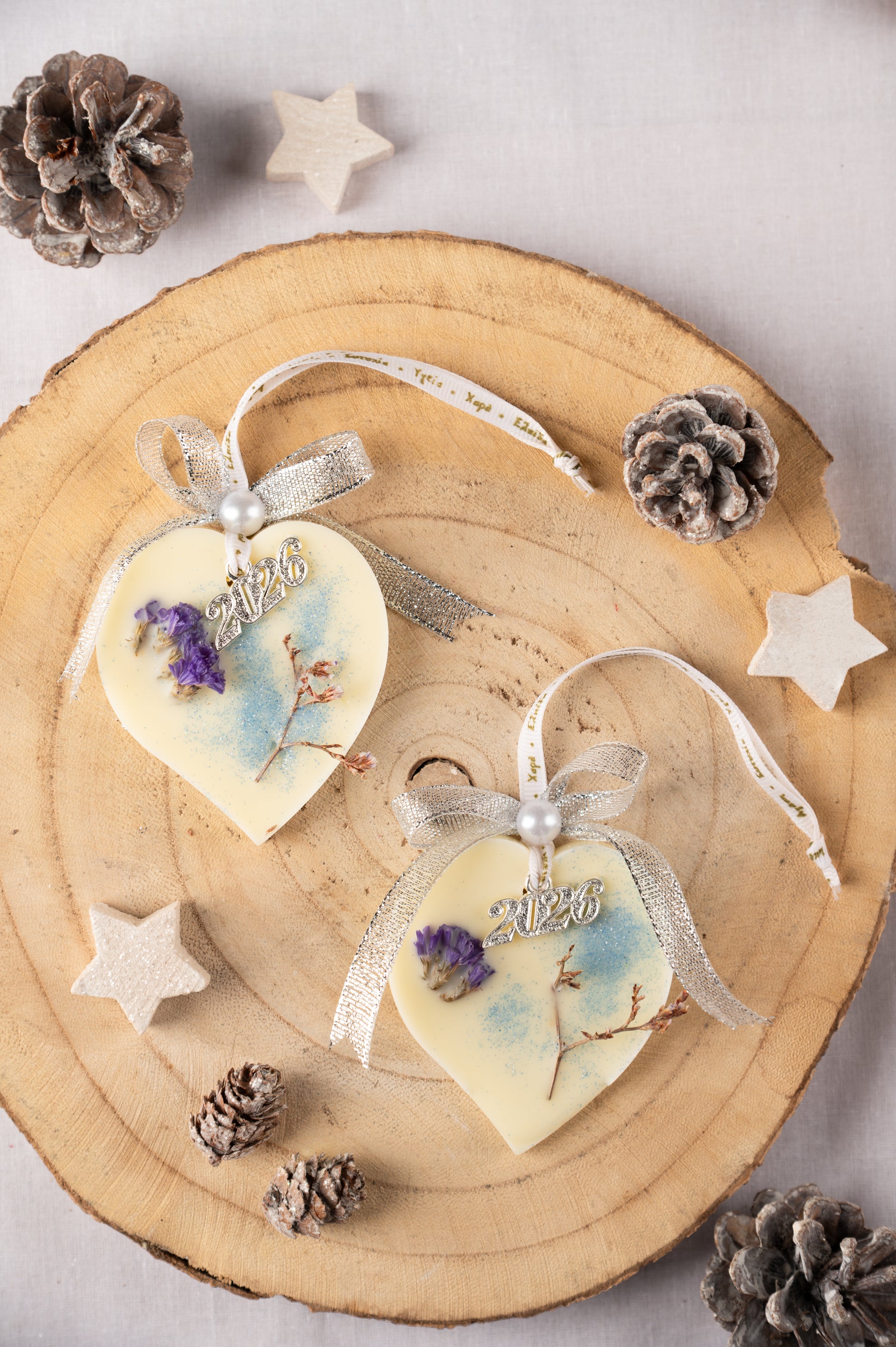 Αρωματικά Γούρια 2026 – Χειροποίητα από Φυτικό Κερί με Αποξηραμένες Πινελιές