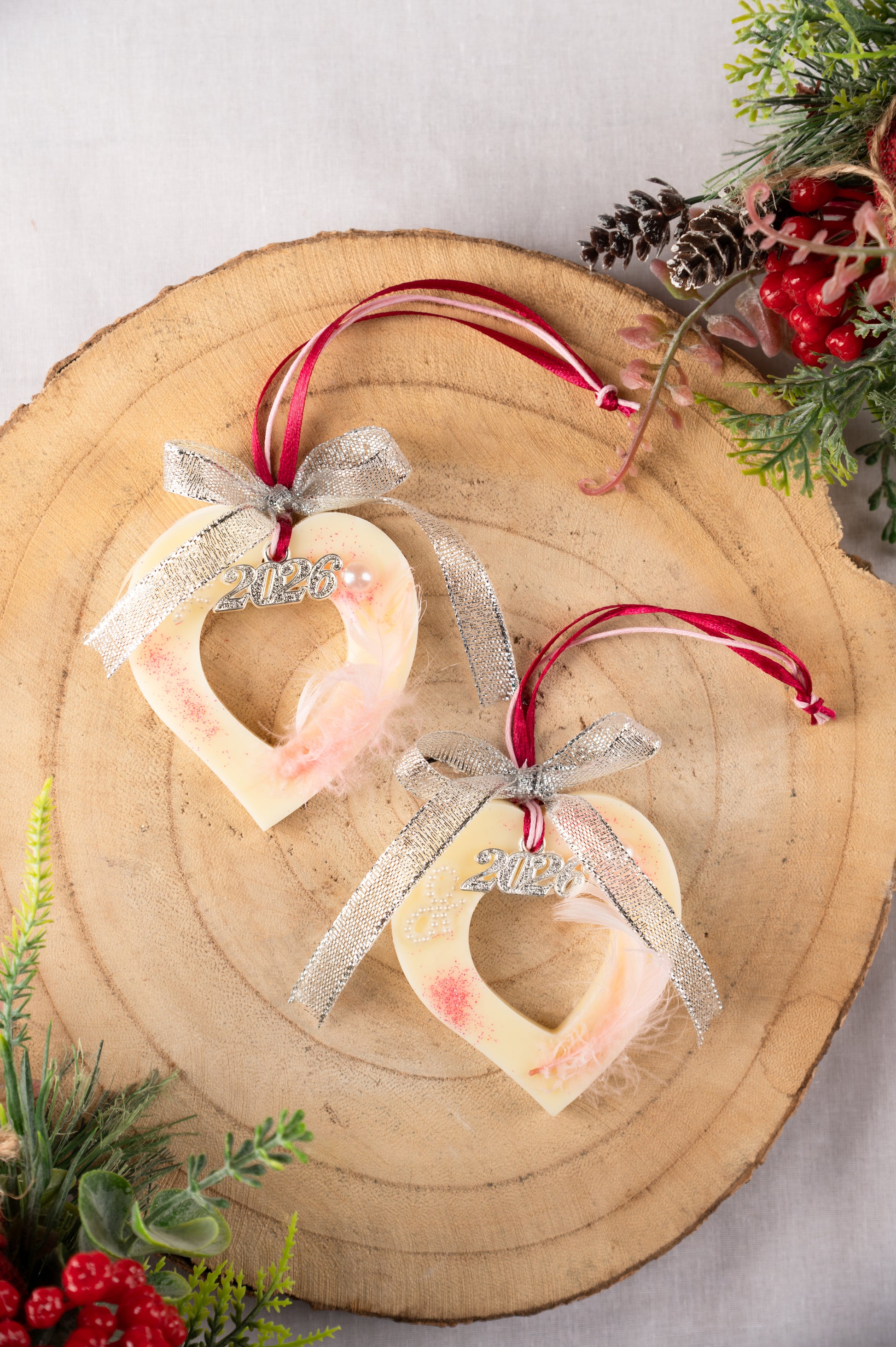Αρωματικό Γούρι 2026 Καρδιά Ροζ | 100% Φυτικό Κερί | Άρωμα Blackberry & Peach